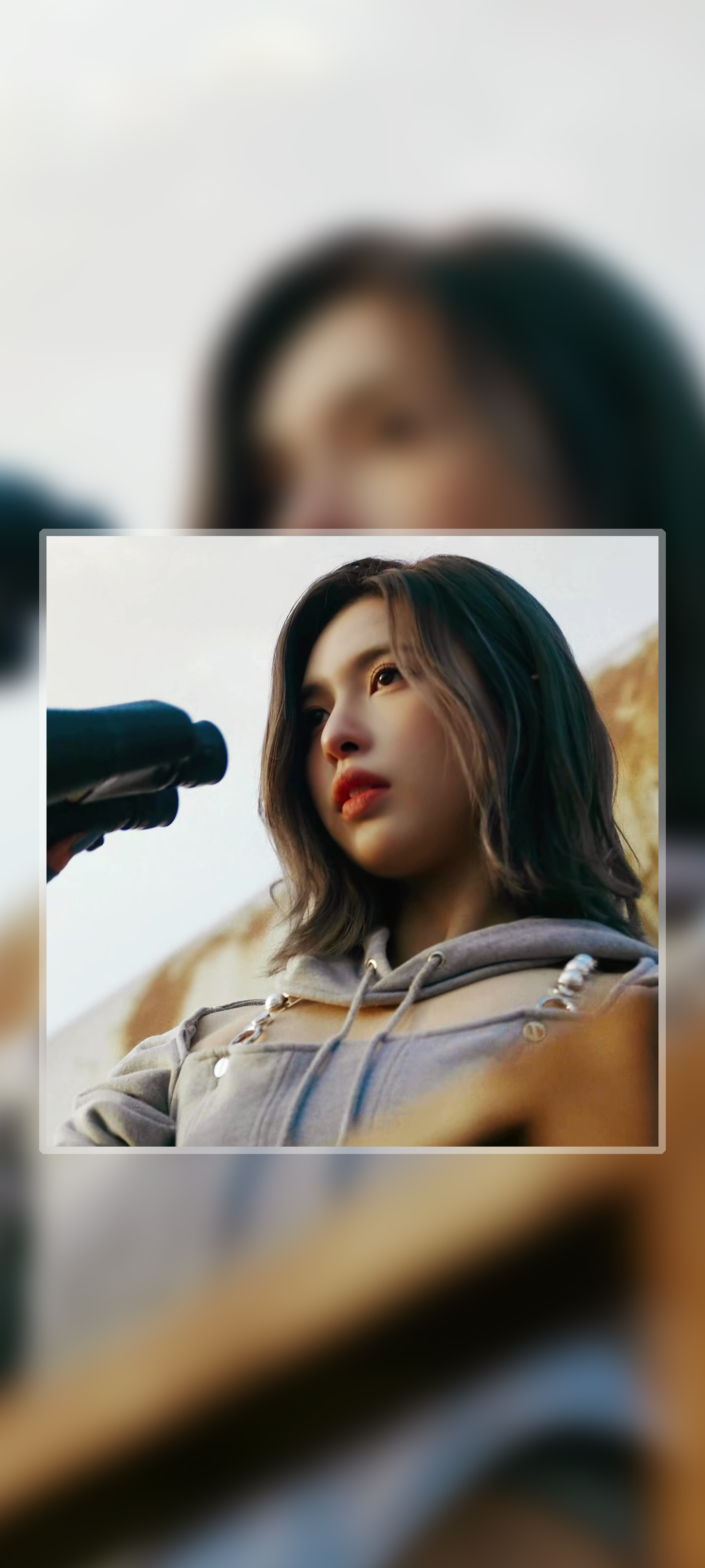 배경화면은 두 가지 스타일로 작업하였습니다. 하나는 얼굴을 중심으로 하여 화면을 꽉 차게 작업한 것이고, 또 다른 하나는 가운데 틀을 둔 뒤 그 안에 얼굴을 배치하고 뒷 배경은 사진을 확대하여 채운 뒤 흐리게 처리한 것입니다. 스타일 선정은 사진 구도에 따라 달라지며 기본적으로 사각 틀을 사용하지 않은 스타일 중심으로 작업을 진행합니다.